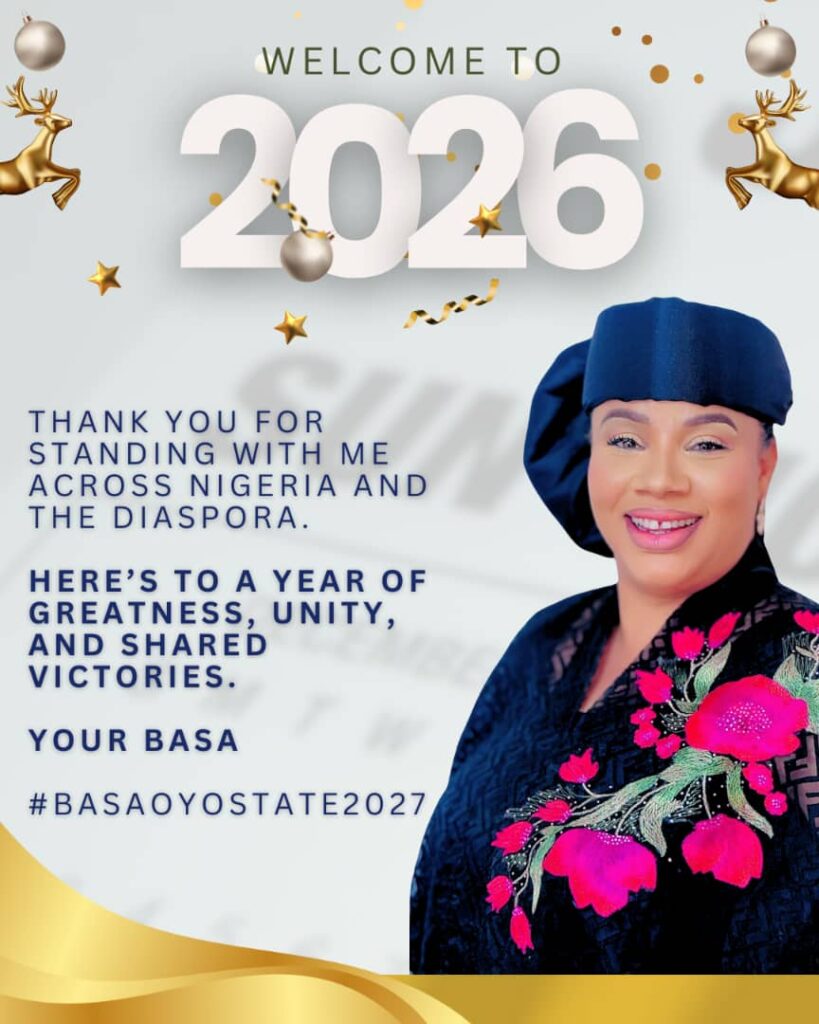 Hon. Bolanle Aminat Sarumi (BASA) has extended warm New Year greetings to her supporters, loved ones, and Nigerians across the country and in the diaspora, as the world ushers in 2026.