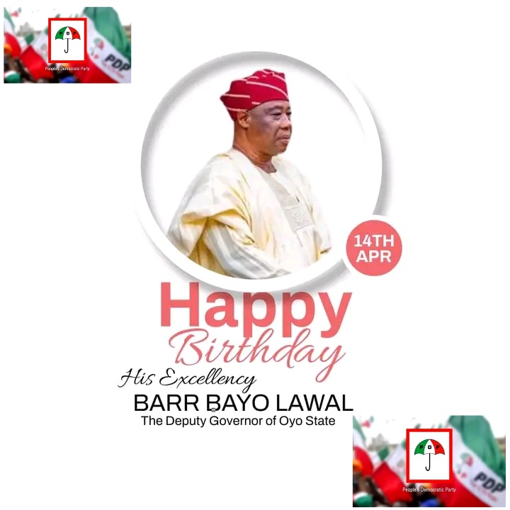 The leadership of the People’s Democratic Party (PDP) has celebrated the Deputy Governor of Oyo State, His Excellency Barrister Bayo Lawal for his exemplary leadership. Barrister Lawal who since coming on board as a co-captain to Engr Seyi Makinde has shown dedication, loyalty and exceptional commitment.