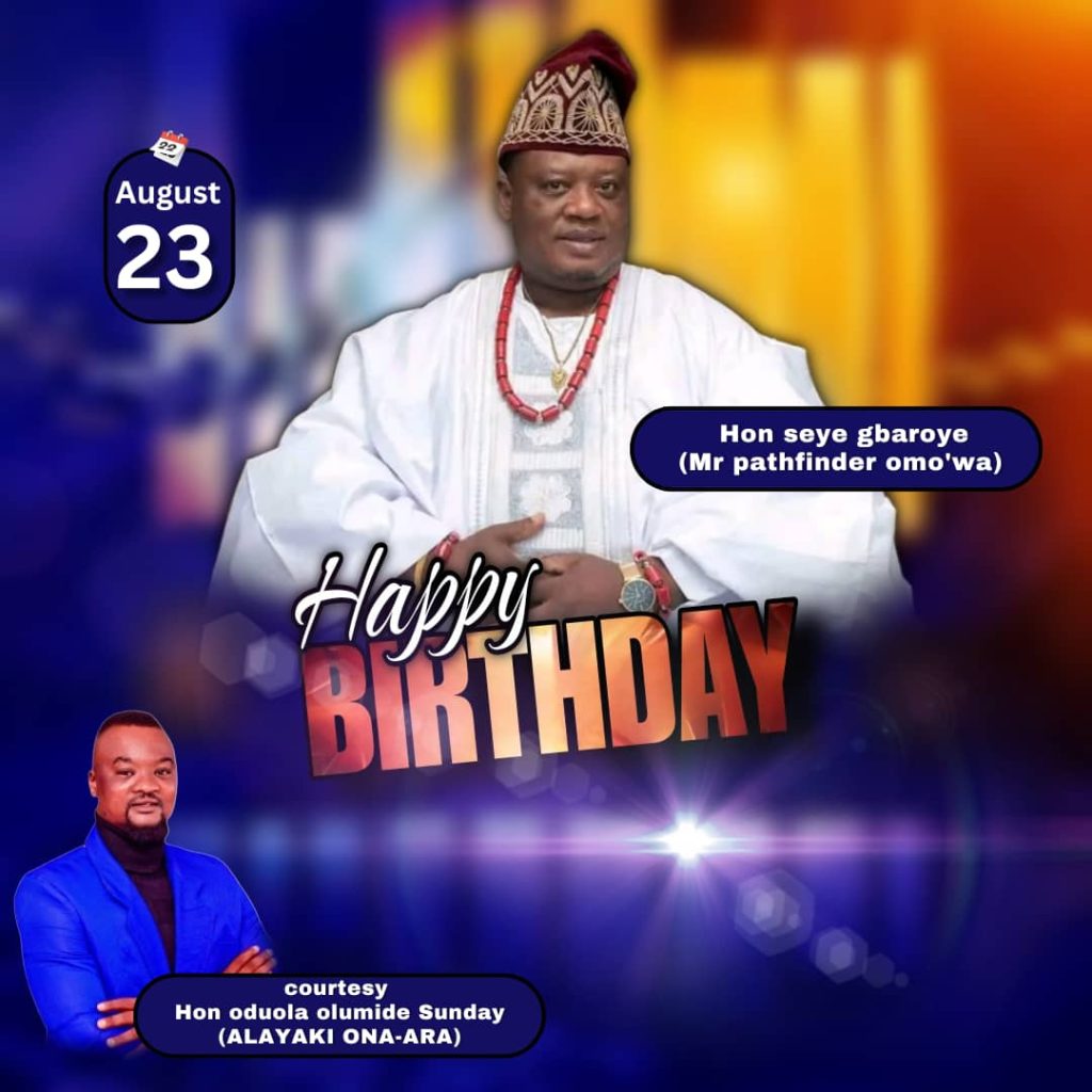 “As we celebrate this remarkable individual, Alayaki Ona-Ara joins friends, family, and well-wishers to wish Hon Seye Gbaroye a joyous birthday on August 23rd.