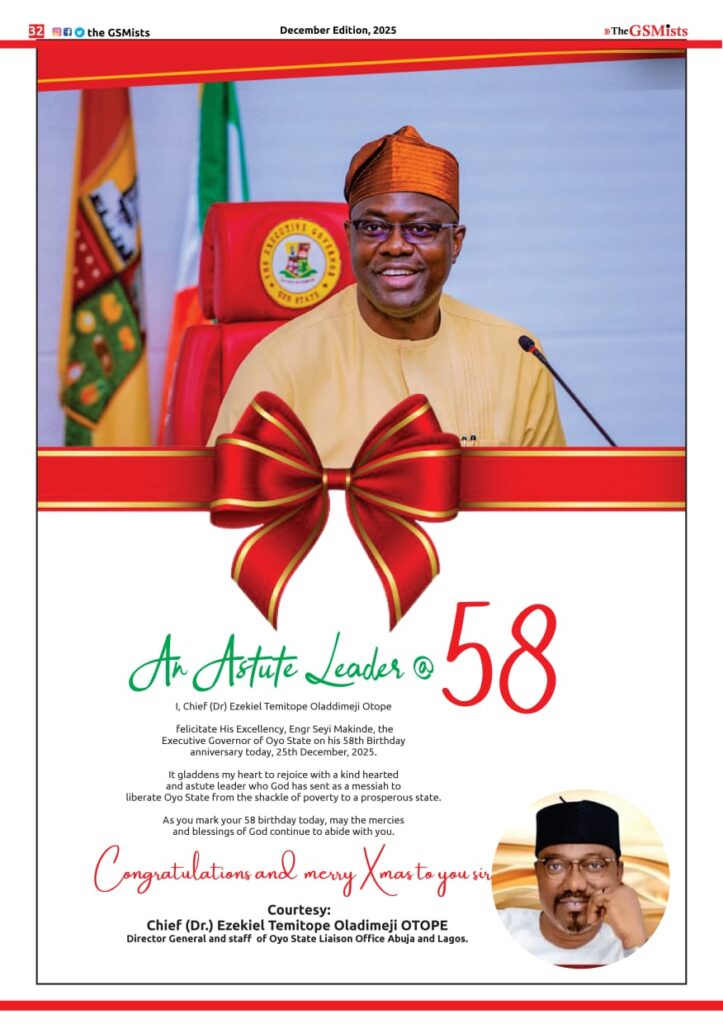 Today, I joyfully join millions of well-meaning sons and daughters of Oyo State to celebrate an exceptional leader, a refined technocrat, and a compassionate servant of the people as His Excellency, Engr. Abiodun Seyi Makinde marks his 58th birthday.