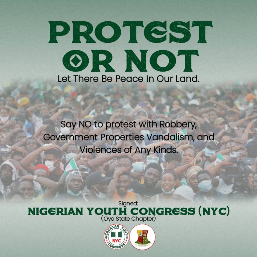 The Oyo State Chapter of the Nigerian Youth Congress (NYC) has issued a statement urging protesters to refrain from violent demonstrations ahead of the upcoming protests on August 1st.