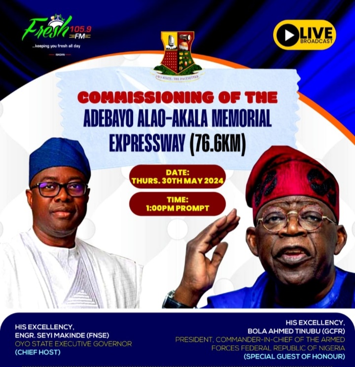 President Bola Ahmed Tinubu will not be present at the commissioning of Iseyin-Ogbomoso Road tomorrow Thursday 30th May, 2024.