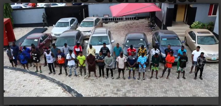 The suspects were nabbed in a sting operation at Soka area of Ibadan, Oyo State, following intelligence reports on their alleged cyber-fraud activities. The suspects are, Okhiria Alex Chibueze, Olootu Damilola Ayomikun, Akiwale Isreal Bunmi, Oladele Olatunde Oladimeji, Okeniyi Samuel Akinniyi, Sanya Oyekole Olakunle, Okon Gideon Henry, Stephen Samuel Shekwuduza, Adeshina Opeyemi Akanni, Hezekiah Ajadi Oluwatobi, Omoke Ogbonnaya Okike, Alex Samuel Aiku, Micheal Olakunle Oyinwola, Salami Oluwafemi Salami, Udeh Moses Emeka and Monday Samuel Nnaemeka….
