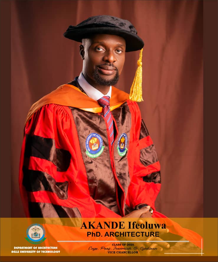 The management and entire team of Egalitarian Voice Media joyfully and proudly celebrate the remarkable academic success of our Chief Editor, Arc. Akande Ifeoluwa, who has officially earned his Doctor of Philosophy (PhD) in Architecture.