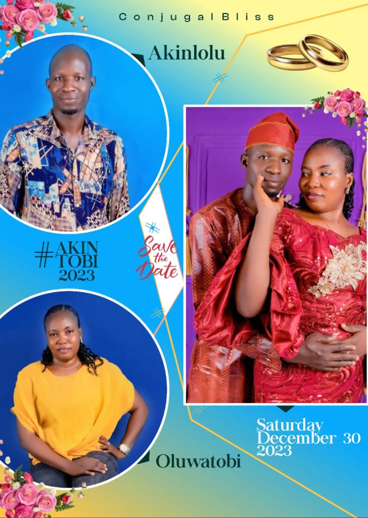 Today, as you exchange vows in the presence of the families and well wishers, know that I am there with you in Person and In spirit, standing by your side as a friend. I wish you all the best on your momentous occasion. May you and your better half, Oluwatobiloba live together in peace, love and unity.
