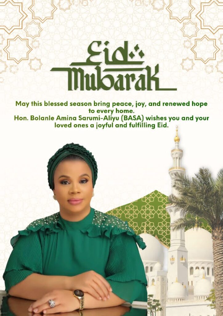 Hon. Bolanle Aminat Sarumi Aliyu (BASA), a leading political figure and Governorship Aspirant in Oyo State under the African Democratic Congress (ADC), has congratulated Muslim faithful on the successful completion of the Ramadan fast and the celebration of Eid-al-Fitr.