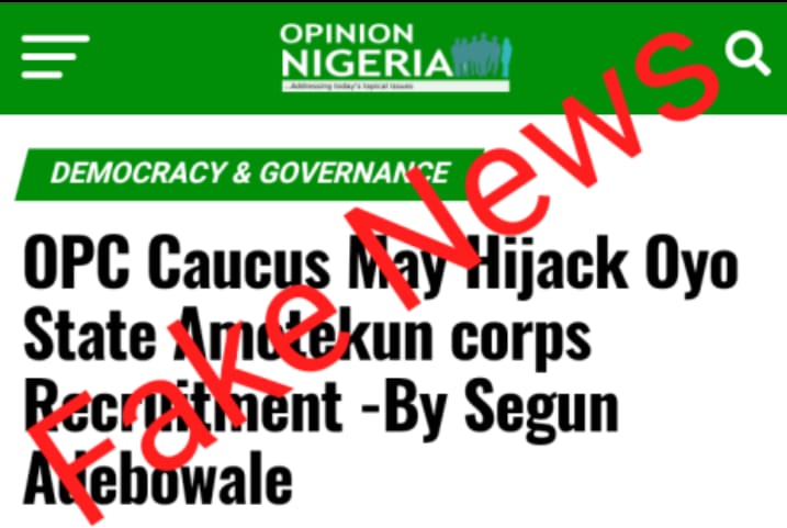 The Oyo State Amotekun Corps Commandant; Col (rtd) Olayinka has call it, in it’s entirety the news peddling online as fake, misleading, ill conceived, and mischievous, An Online News medium ‘pinionnigeria.com’ reports over the administrative decision that led to the emergence of Amotekun local government coordinators as campaign of calumny, Segun Adebowale has Alleged that OPC Caucus have Hijack Oyo State Amotekun Corps Recruitment.
