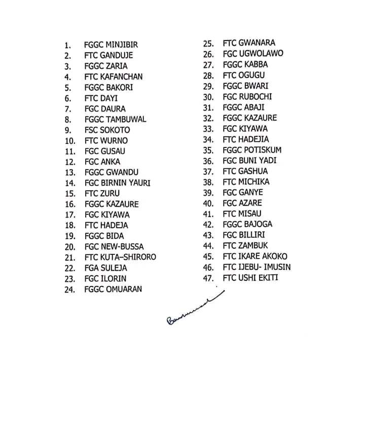 FG Orders Immediate Closure of 47 Federal Unity Colleges Over Security Concerns