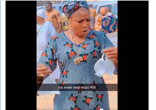 In a video sighted by Egalitarian Voice Correspondent, a woman was seen advertising ‘Ice Water’ which is basically cold water packaged in a white nylon instead of the sealed sachet and it is relatively cheaper compared to the normal sachet water.