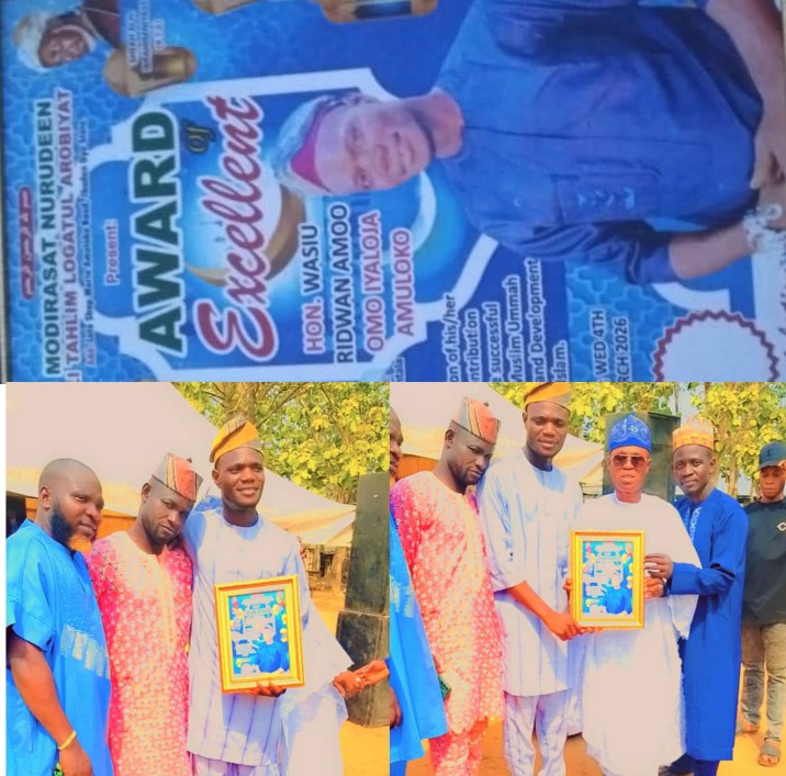 Hon. Wasiu Ridwan Amoo, popularly known as OMO IYALOJA AMULOKO, has been honoured with an Islamic Merit Award by Modirasat Nurudeen Li Ta’lim Logatul Arobiyat in recognition of his outstanding contributions to the growth of Islam and his selfless service to humanity.
