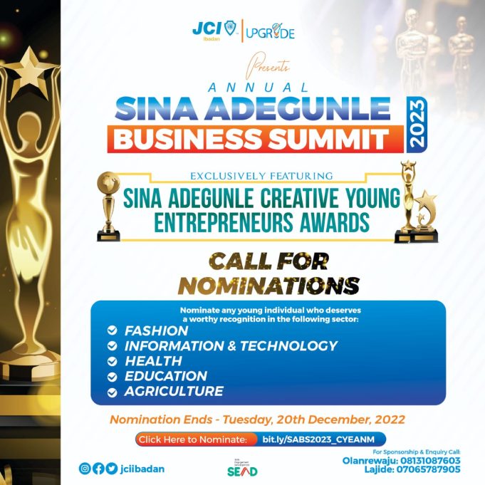 The Junior Chamber International is set to hold the 4th Sina Adegunle Business Summit and Sina Adegunle Business Plan Competition, it also calls for application from entrepreneur within Oyo State to apply.
