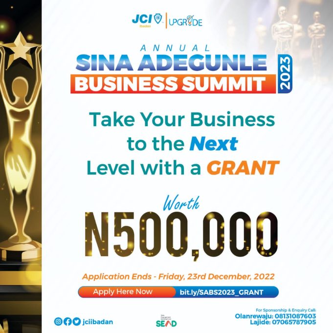 “We are calling on idea and early stage entrepreneurs based in Oyo State to apply to pitch their ideas and businesses at the 4th Edition of the business summit by submitting application here” http://bit.ly/SABS2023_GRANT