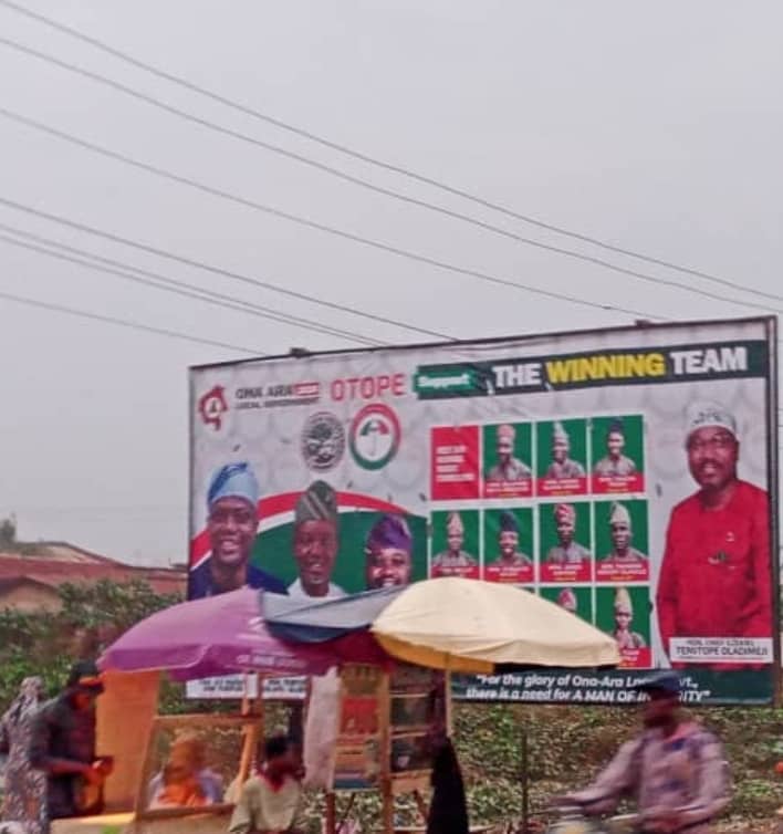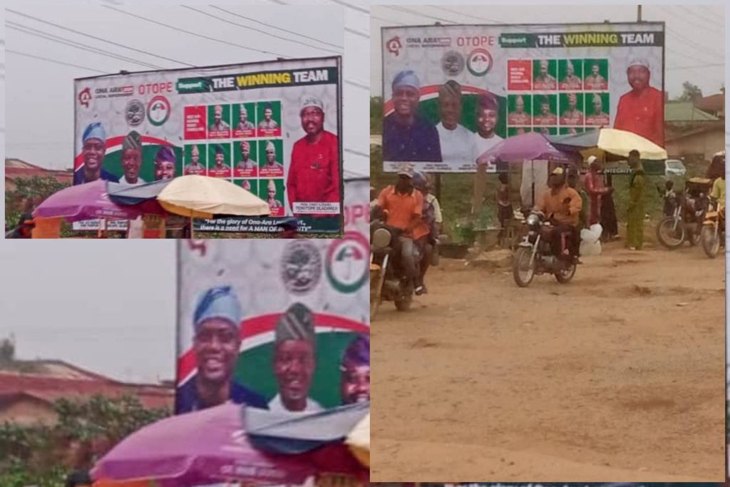 LG Polls: Again, OTOPE Erected Advertorial Billboard For Ona Ara PDP Chairmanship and Councilorship Candidates