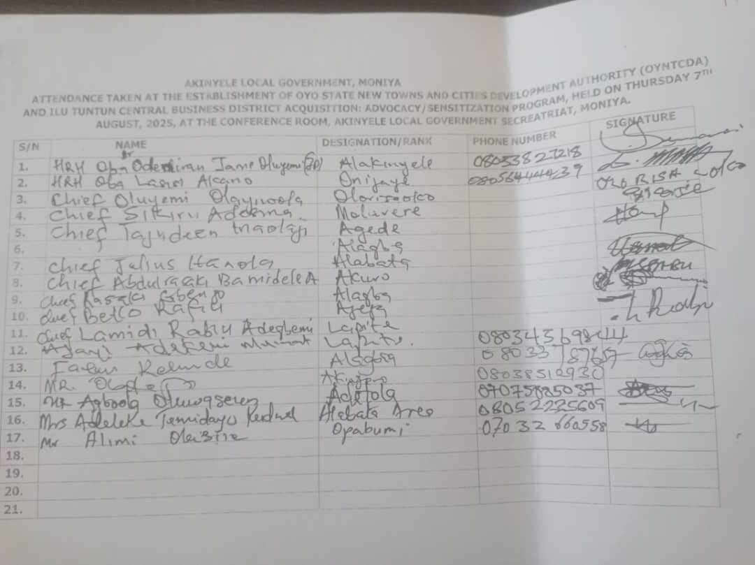During the meeting, Akinyele Local Government Chairman, Hon. Akinwole, urged residents to embrace tolerance and support the project, reinforcing the collective responsibility for development. The royal highnesses in attendance expressed their gratitude to His Excellency Engr. Seyi Makinde for this laudable initiative and pledged their unwavering support for the project.