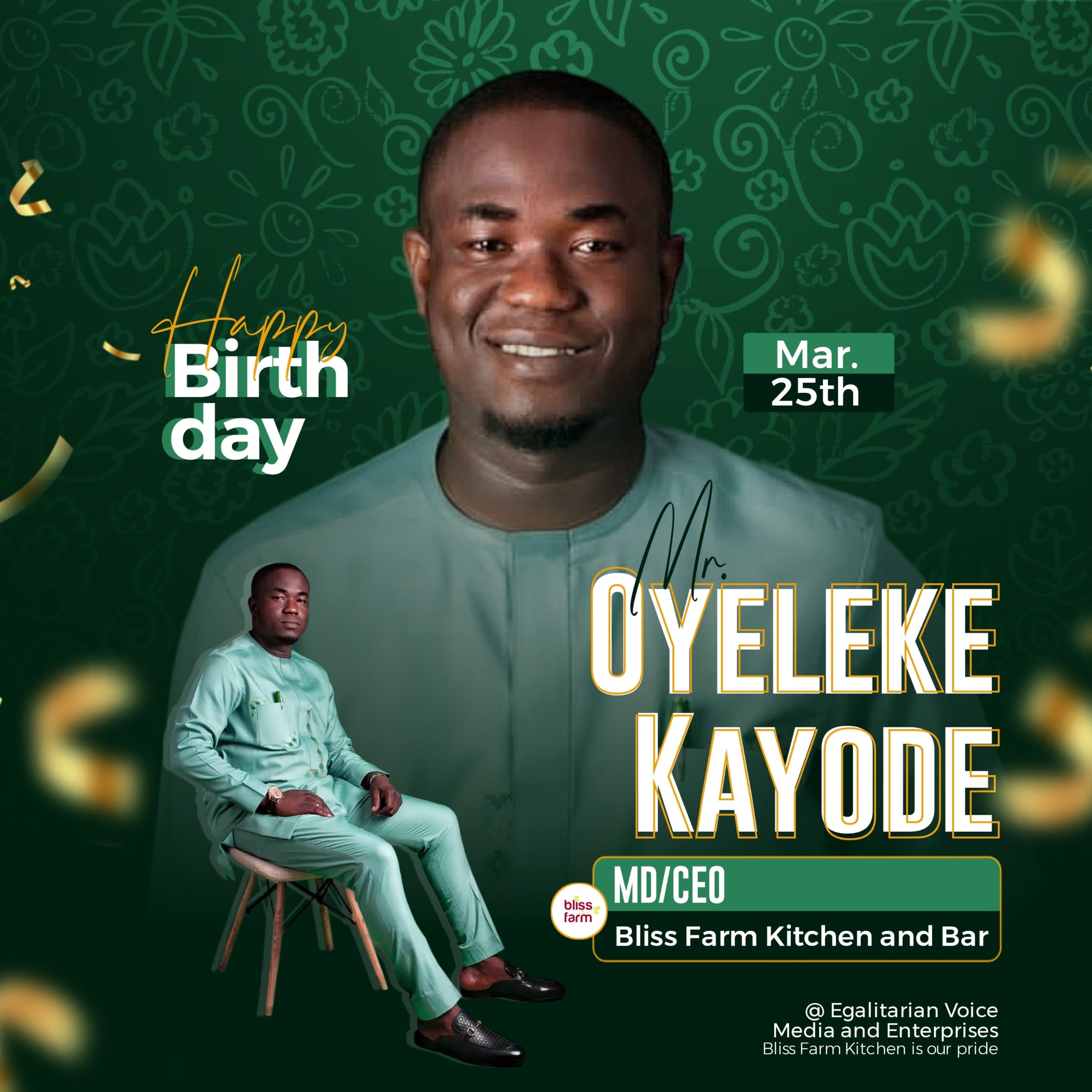 March 25th: Bliss Farm Media Team Felicitates CEO, Kayode Oyeleke On His Birthday