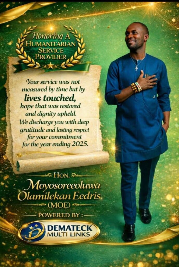 Hon. Moyosoreoluwa Olamilekan Eldreez (MOE), fondly known as Ijoba Authority, is truly an embodiment of purposeful leadership and uncommon honor. He is not just a man who knows the way he consistently shows the way to the people within his fold through selfless service, humility and unwavering commitment to the common good.
