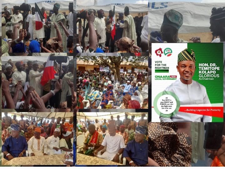 Ona Ara Local Government Area agog today Saturday 9th November, 2023 at the party (PDP) local government general meeting held at Elekuro High School Play Ground, Owode, Ibadan. A massive crowd welcomed the party’s chairmanship candidate, Hon. Dr. Kolapo Temitope (GLORIOUS), along with his vice, Oluwole Windapo, and a capable team of 11 councilorship candidates slated for the 2024 Oyo State Local Government election.