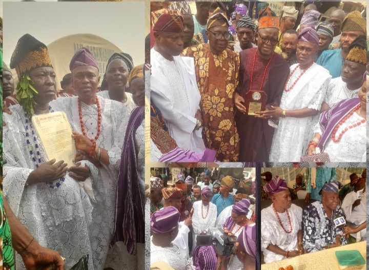 The Council Chairman, Hon Musibau Adesina Sanusi (SHABA), presented the certificate of Office to Chief Adebayo Moradeyo, in the presence of prominent traditional, religious and market leaders from various villages and towns in Ona-Ara, as well as hundreds of residents of the local government.