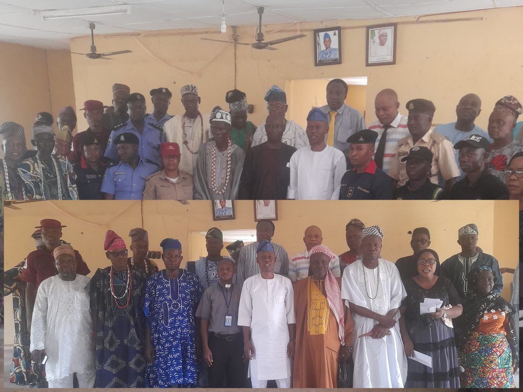 In attendance were Stakeholders in the Local Government, Representatives of The Nigerian Police Force, Representatives of Nigeria Security and Civil Defence Corps (NSCDC), Representatives of State Security Service (SSS), Representatives of Federal Road Safety Commission (FRSC), National Orientation Agency(NOA), Amotekun Corps, Vigilante, Operation Burst, Ona Ara Police Community Relation Committee(PCRC), among others.