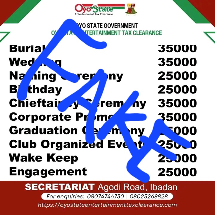 The Oyo State Government has dismissed as false a viral post alleging plans to impose taxes on social events such as burials, naming ceremonies, and weddings.