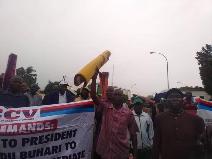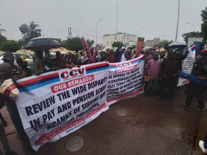 Some retired soldiers are protesting salary and pension gaps among the ranks of serving and retired military personnel on Monday in Abuja.