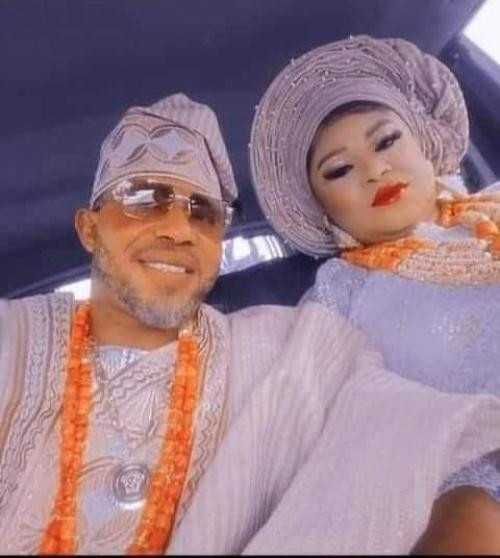 According to reports, the mother of six married her new husband, Aremu Abiola, barely three years after her first husband was killed .
